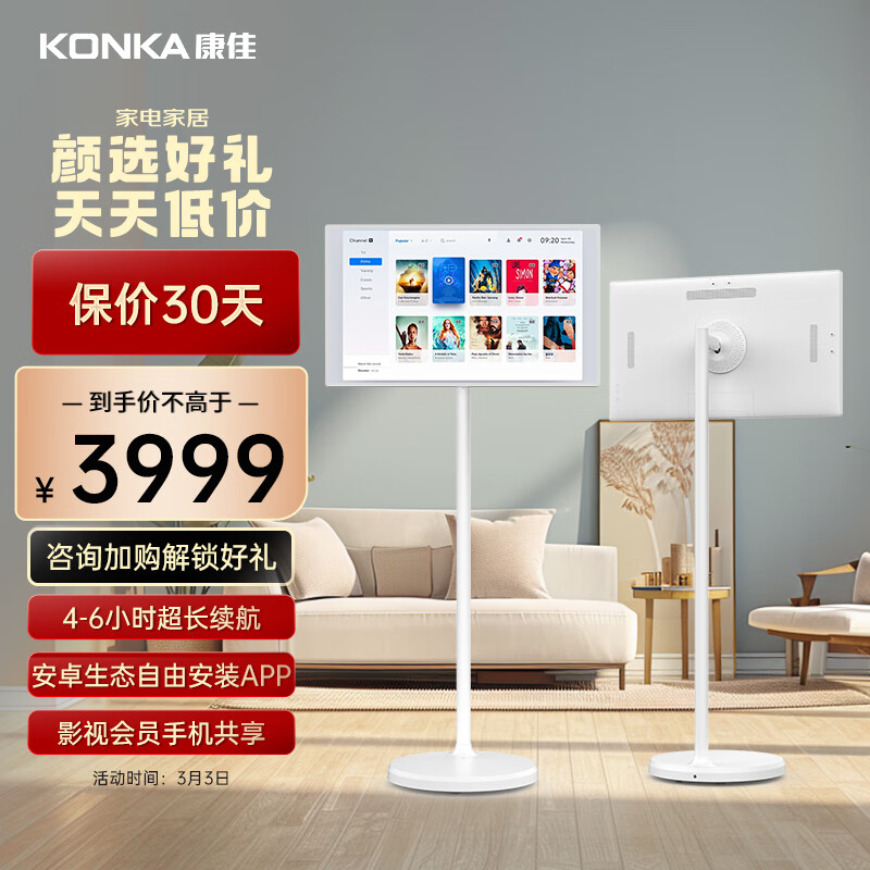 康佳32英寸随心屏 移动自在屏 大屏学习机 触控触摸一体机 智慧屏平板电视电脑显示 移动精灵A32M1价格:3999.00元!