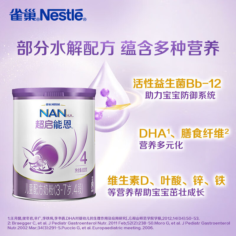 雀巢超启能恩4段奶粉学生适用 乳蛋白部分水解(3-7岁适用)800g大罐价格:233.33元!