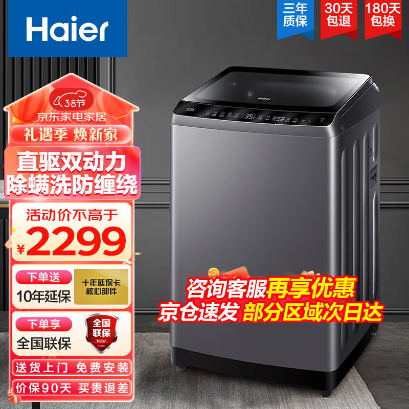 海尔(Haier)直驱变频双动力防缠绕波轮洗衣机全自动10公斤一级能效家用大容量智能除螨羊毛羽绒洗BZ3288[家电]价格:2499.00元!