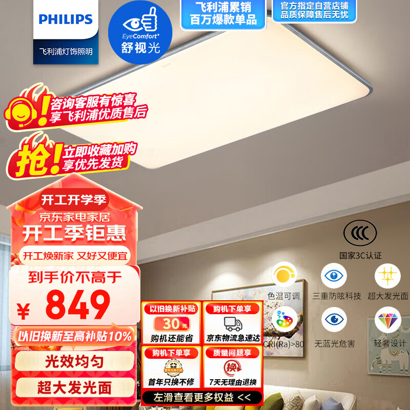飞利浦LED吸顶灯客厅灯北欧风现代简约客厅卧室 怡轩灰120W价格:1249.00元!
