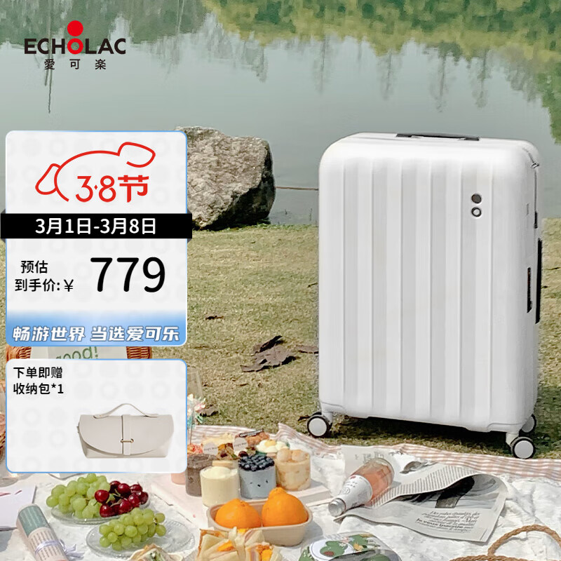 爱可乐(Echolac)万向轮行李箱旅行箱密码箱防刮旅游扩容箱托运箱 PC232 白色28吋价格:859.00元!