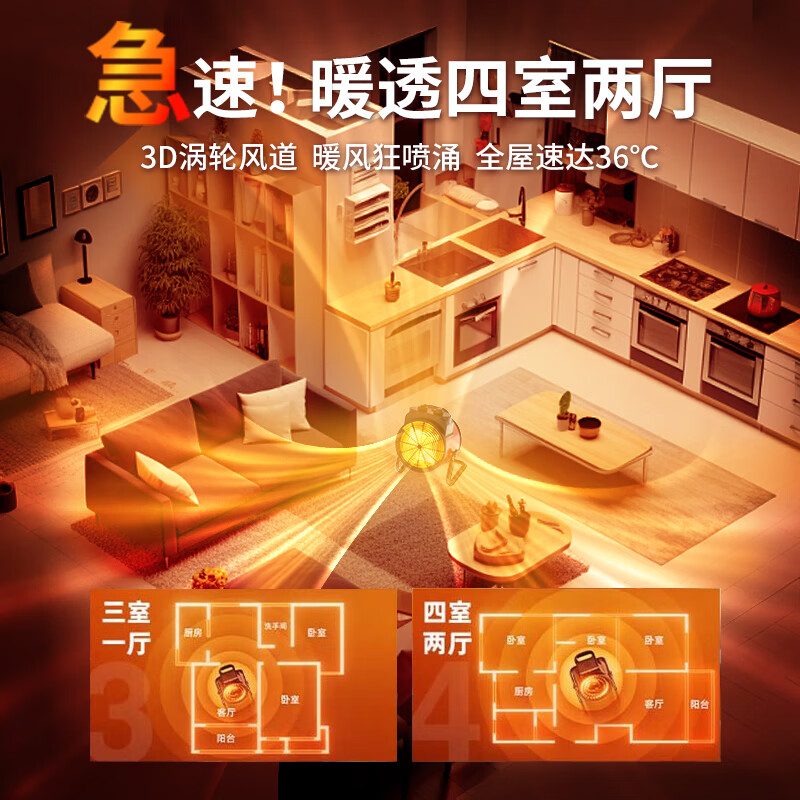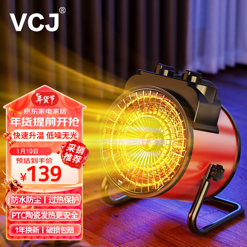 VCJ【德国品牌】暖风机工业取暖器家用节能小钢炮大功率热风机速热省电暖器3000W PTC陶瓷发热价格:179.00元!