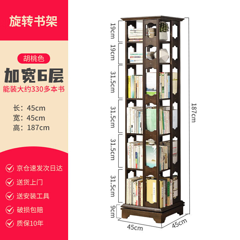 家逸旋转书架落地实木书柜360度可旋转层架落地置物架收纳架加宽六层价格:1029.00元!