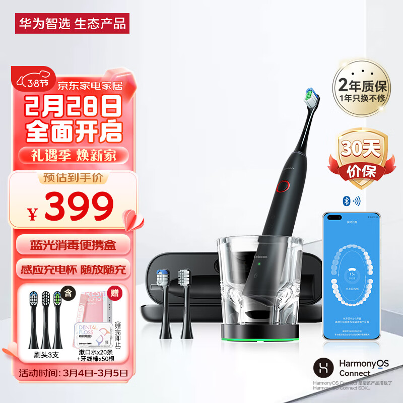 华为智选力博得电动牙刷 智能声波牙刷 成人情侣款 星钻尊享礼盒 炫酷黑 送女生牙刷礼物 送男友礼物价格:439.00元!