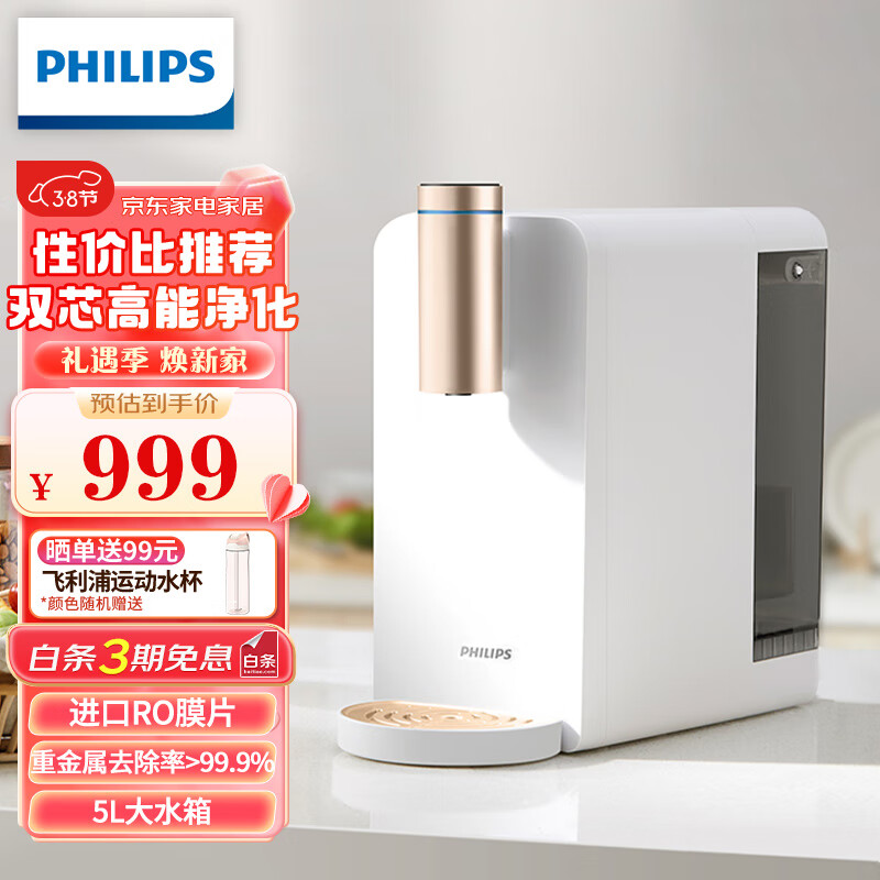 飞利浦(PHILIPS)时光机T50净饮一体机 家用净水器即热式饮水机 台式免安装反渗透直饮水机 ADD6813价格:999.00元!