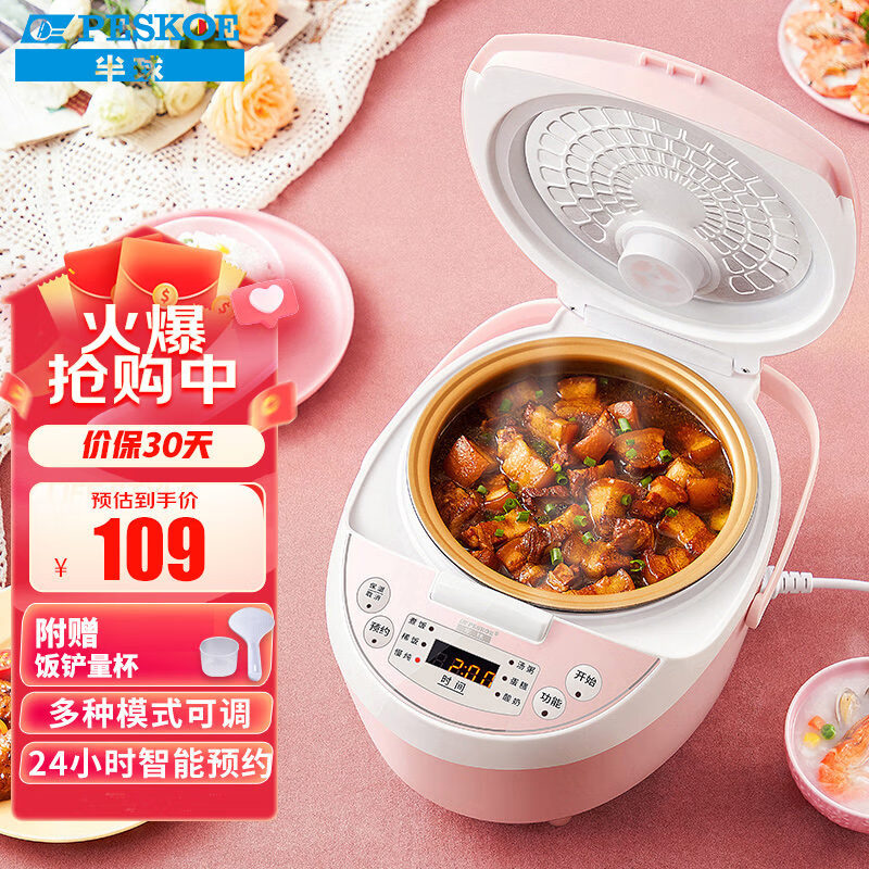 半球(Peskoe)电饭煲3L电饭锅 24小时智能预约小电饭煲NS-F30F07(无蒸笼)价格:109.00元!