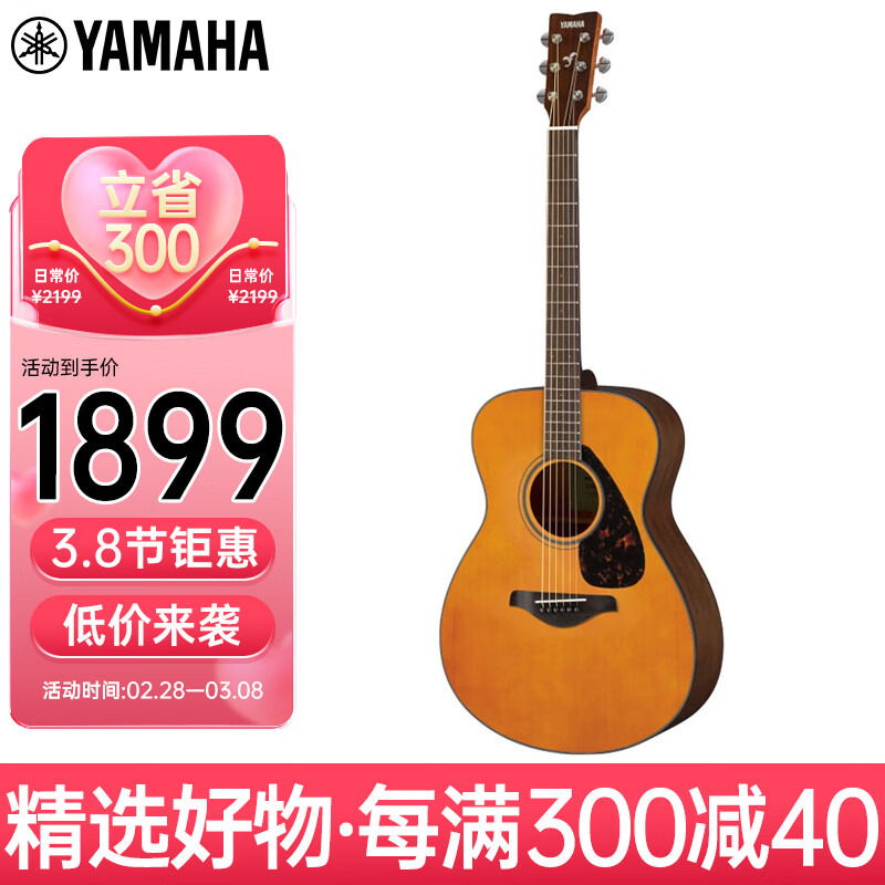 雅马哈(YAMAHA)FS800VN 美国型号 实木单板 初学者民谣吉他40英寸吉它亮光复古色价格:2199.00元!
