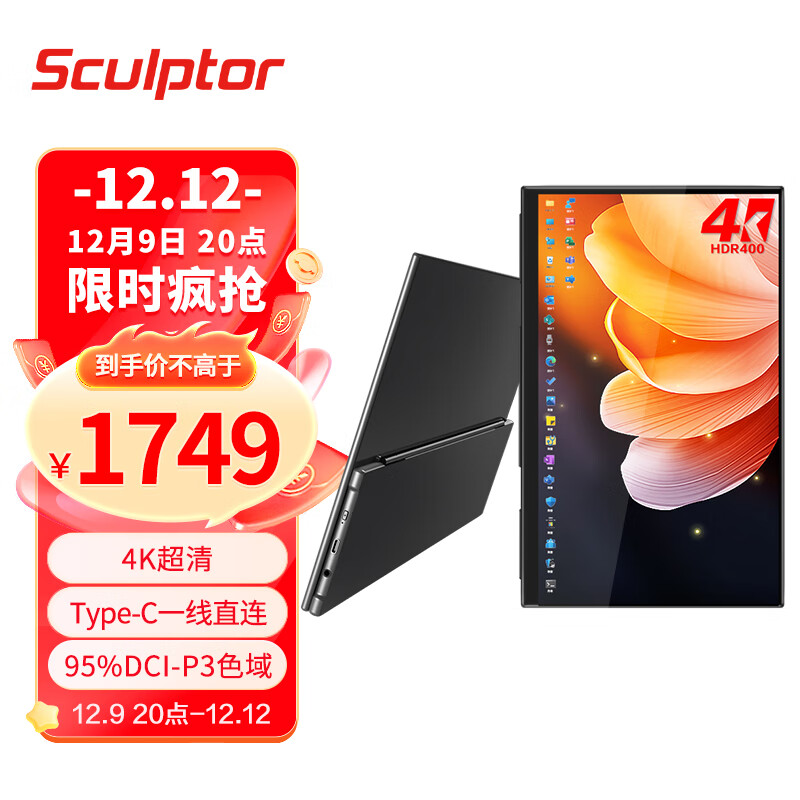 ??雕塑家15.6英寸便携显示器 4K显示器 触摸便携屏 type-c手机电脑副屏 笔记本Ps4/5游戏外接扩展移动拓展屏价格:1849.00元!