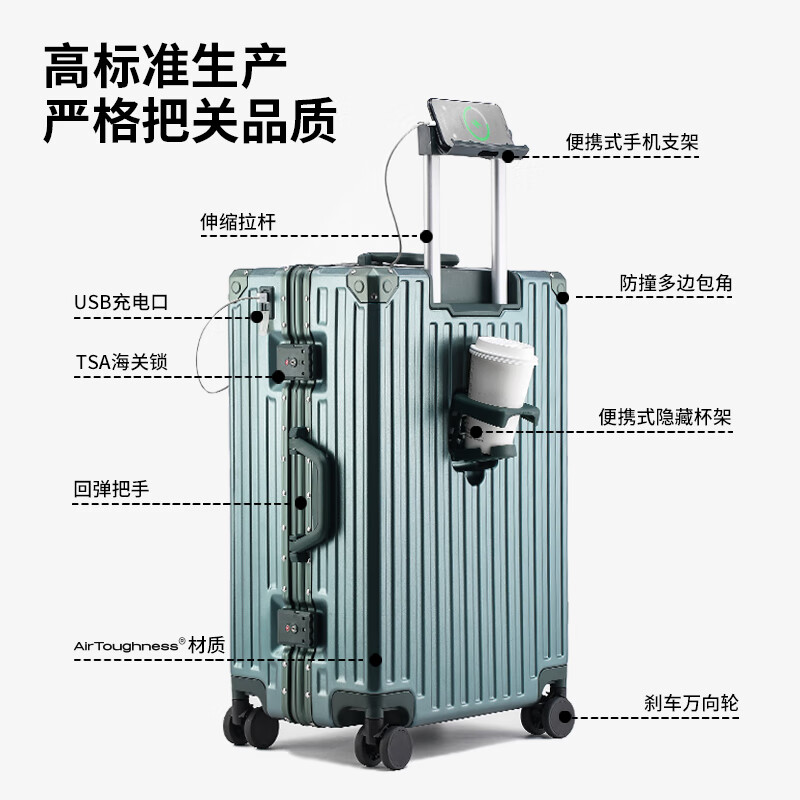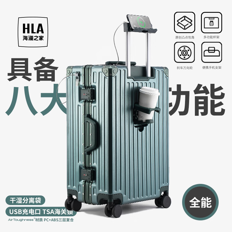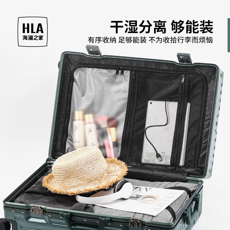 海澜之家(HLA)商务行李箱男多功能拉杆箱旅行登机密码托运皮箱 暗夜绿26英寸价格:509.00元!