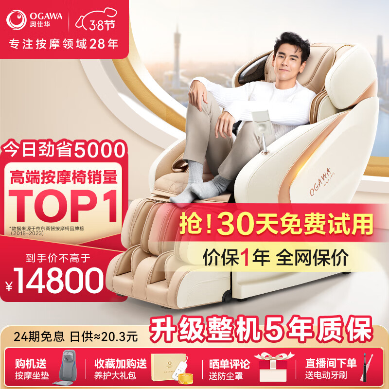 奥佳华(OGAWA)家用按摩椅太空舱全身全自动智能电动按摩沙发零重力3D机芯中医养生老人豪华头等舱7808知芯大师S+ 【彭于晏力荐】金砂杏价格:19800.00元!