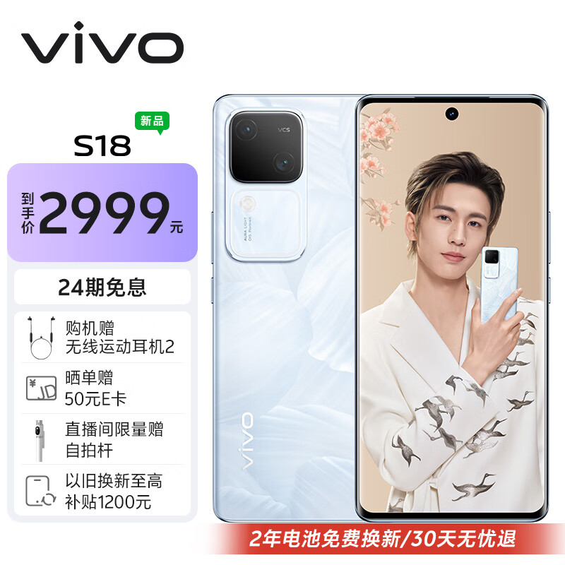 vivo S18 16GB+512GB 花似锦 后置影棚级柔光环 5000mAh超薄蓝海电池 第三代骁龙7 5G 快充 拍照 手机价格:2999.00元!