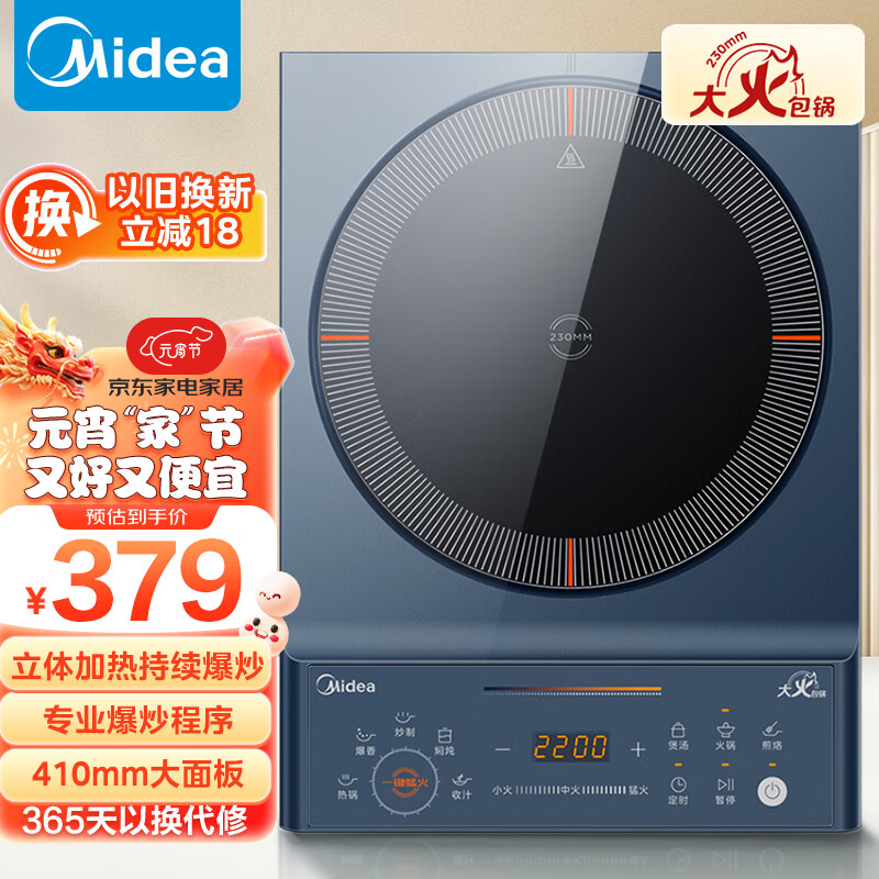 美的(Midea)电磁炉 家用大功率 匀火加热 火锅炉 九档火力 智能定时 MC-CLC2266价格:379.00元!