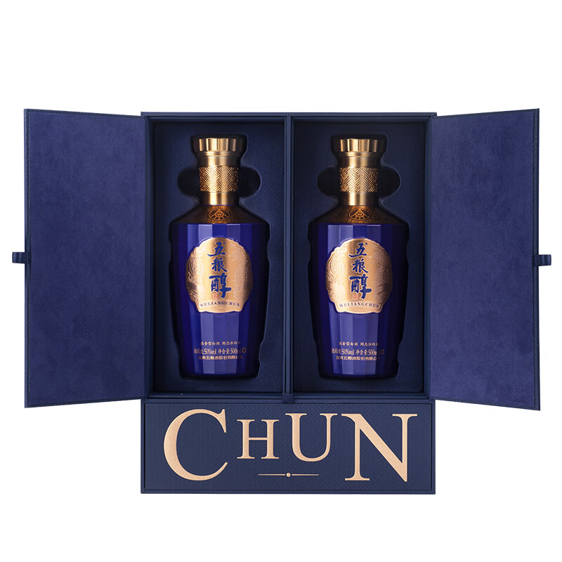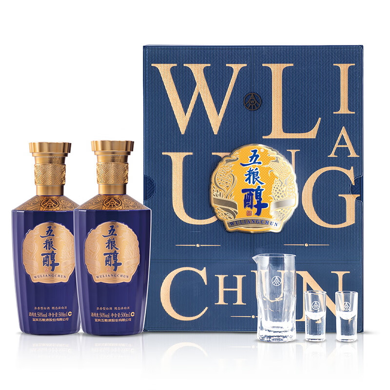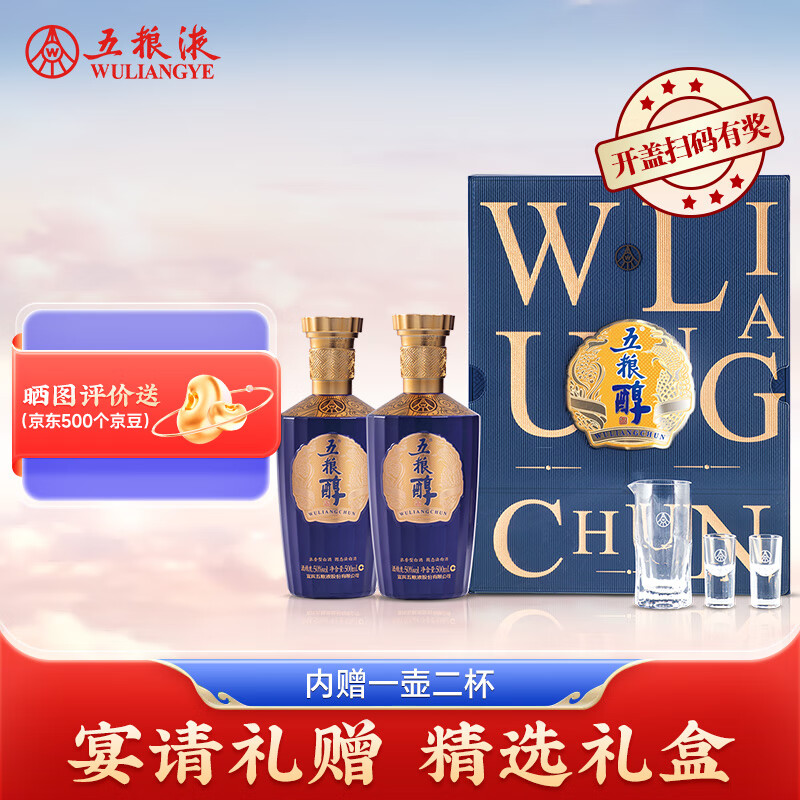 五粮液(WULIANGYE) 五粮醇 醇品浓香型白酒50度500ml*2瓶 礼盒装优级酒 白酒礼盒价格:728.00元!