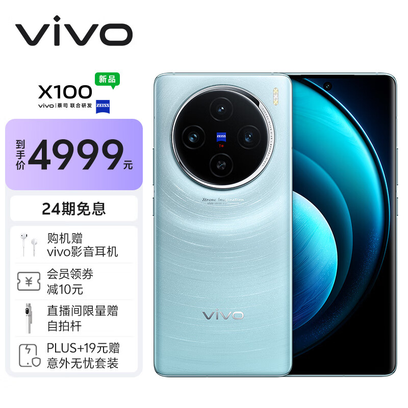 vivo X100 16GB+1TB 星迹蓝 蓝晶×天玑9300 5000mAh蓝海电池 蔡司超级长焦 120W双芯闪充 拍照 手机价格:4999.00元!