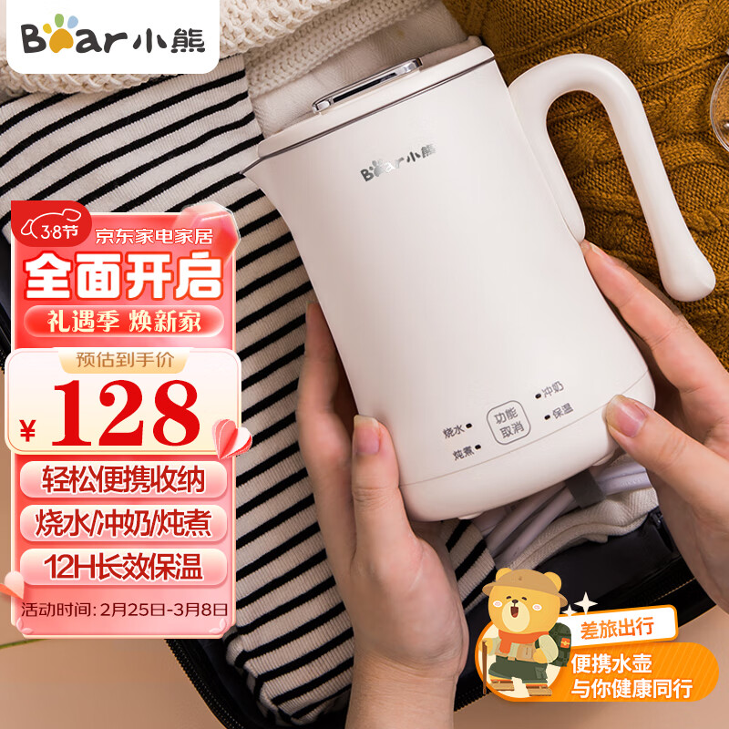 小熊(Bear)便携式烧水壶烧水杯电热水壶电水壶 0.6L迷你恒温水壶养生家用旅行冲奶热水壶ZDH-A06H1价格:128.00元!