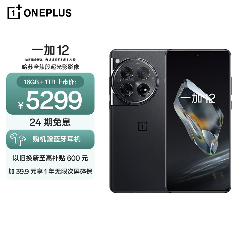 一加 12 16GB+1TB 岩黑 哈苏全焦段超光影影像 第三代骁龙8旗舰芯片 OPPO AI 5G无线充游戏拍照手机价格:5299.00元!