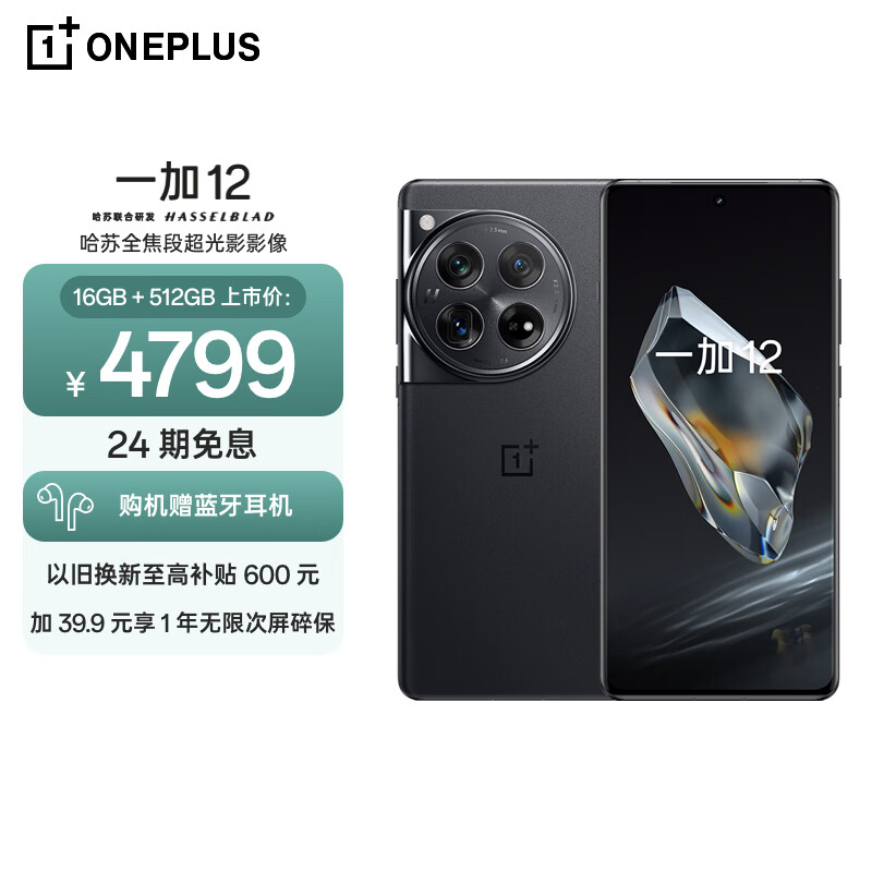 一加 12 16GB+512GB 岩黑 哈苏全焦段超光影影像 第三代骁龙8旗舰芯片 OPPO AI 5G无线充游戏拍照手机价格:4799.00元!