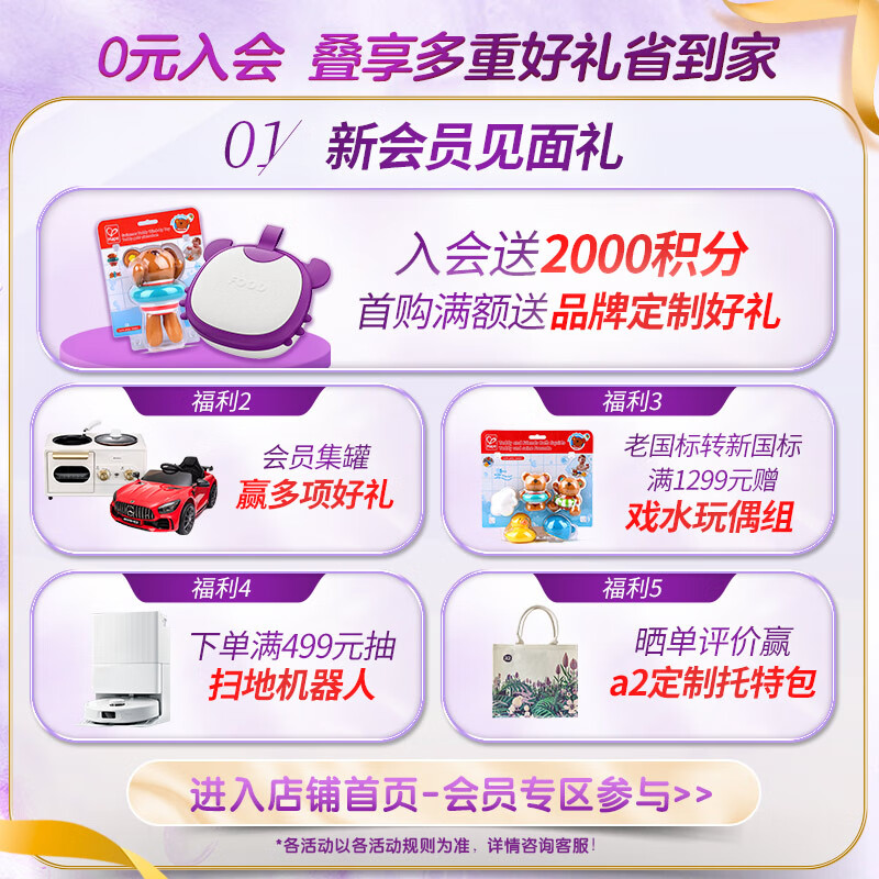 a2至初 2段奶粉 较大婴儿配方奶粉(6-12月龄)850g*6罐 新国标价格:2440.90元!