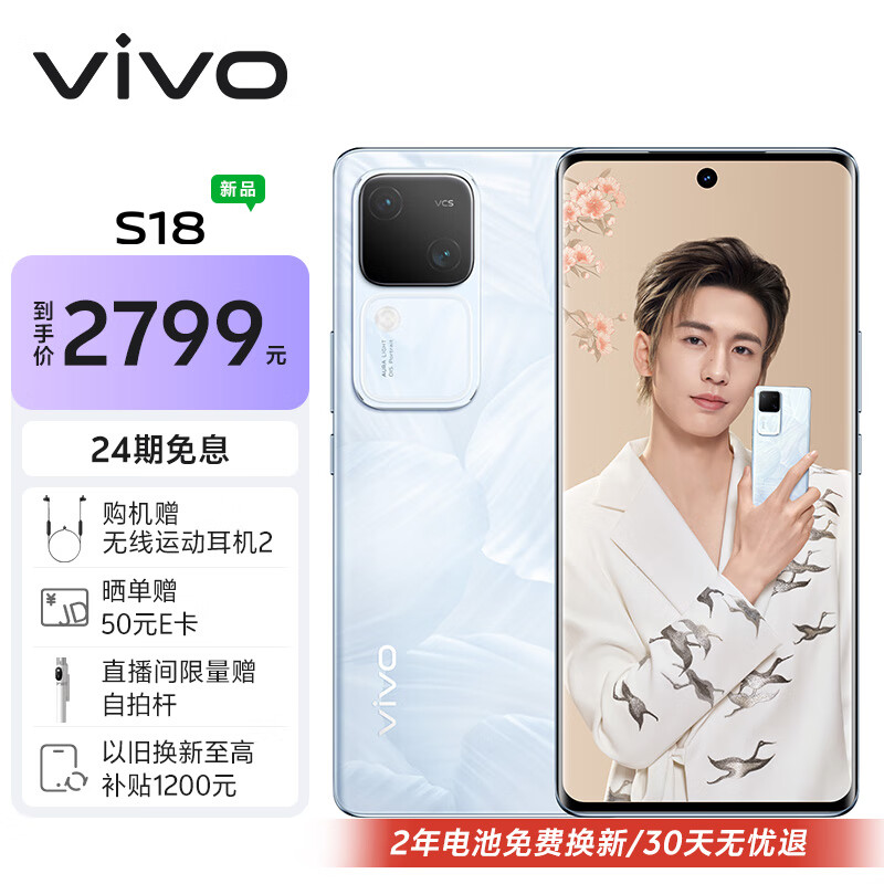 vivo S18 12GB+512GB 花似锦 后置影棚级柔光环 5000mAh超薄蓝海电池 第三代骁龙7 5G 快充 拍照 手机价格:2799.00元!