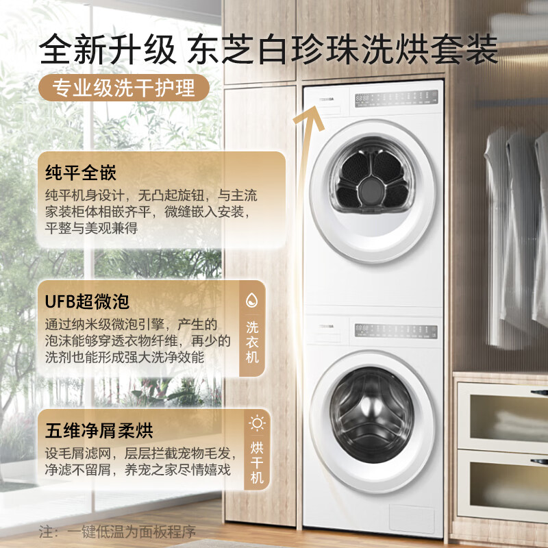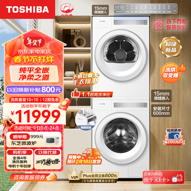 东芝(TOSHIBA)白珍珠洗烘套装 DG-10T23+DH-10T23B 10KG纯平全嵌滚筒洗衣机+10KG热泵式变频烘干机 智能投放价格:11999.00元!
