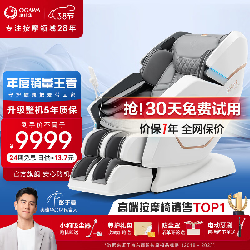 奥佳华(OGAWA)按摩椅家用太空舱全身按摩小巧沙发多功能全自动电动按摩椅子3D机芯中医推拿豪华头等舱7608TEN+ 【彭于晏同款】皓月灰价格:14999.00元!