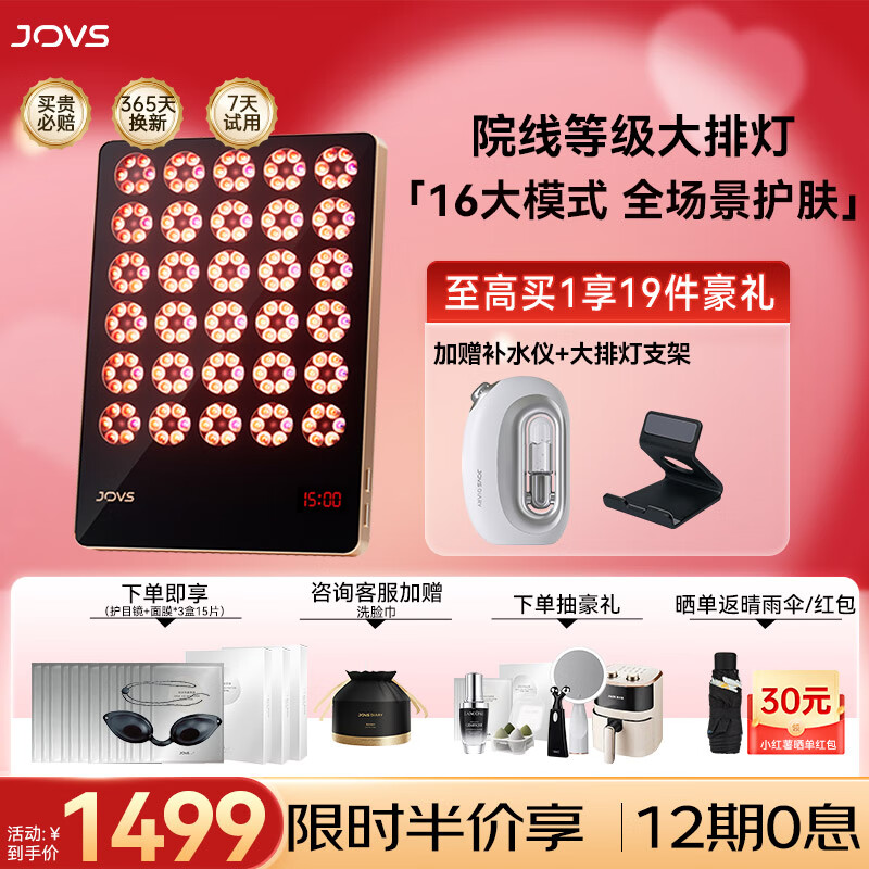 JOVS大排灯美容仪红蓝黄6种光修护舒缓亮肤光子嫩肤仪 家用面部全身可38女神节礼物送女生黑耀金价格:2619.00元!