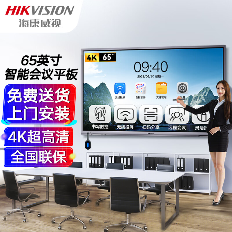 海康威视65英寸远程视频会议平板电子白板教学办公一体机4K超高清触摸显示智慧屏DS-D5B65RO/C价格:5499.00元!