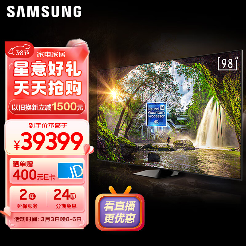 三星(SAMSUNG)98Q80Z 98英寸QLED量子点 AI智能补帧120Hz高刷 平板液晶电视 无开机广告 QA98Q80ZAJXXZ 100价格:39399.00元!