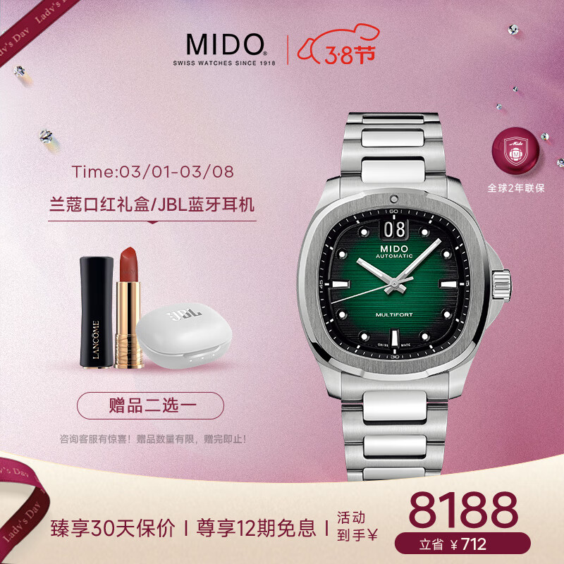 美度(MIDO)瑞士手表 舵手系列 大日历 TV款 商务休闲 自动机械钢带男表 任嘉伦同款价格:8188.00元!
