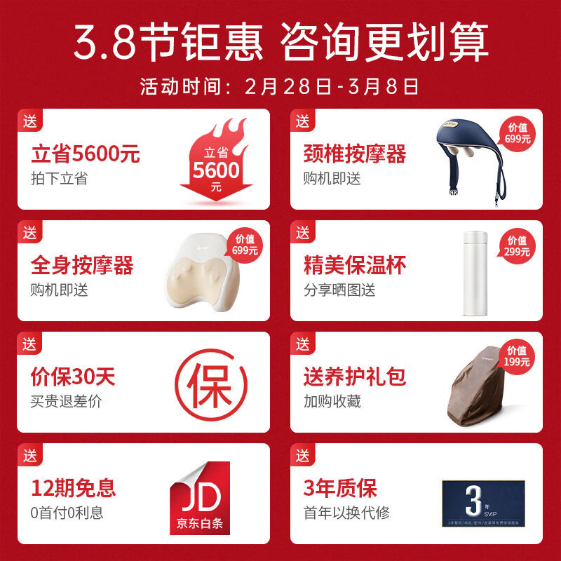 功能:蓝牙音乐,扶手连动,腰部热敷