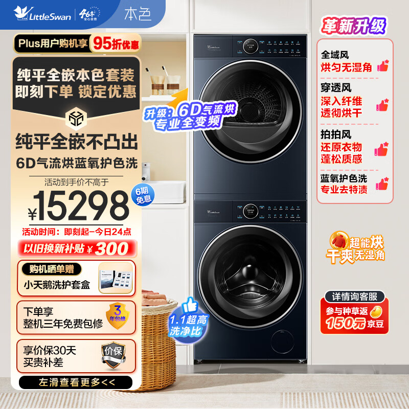 小天鹅(LittleSwan)洗烘套装 10KG滚筒洗衣机全自动+热泵烘干机家用 纯平全嵌 本色蓝氧 全变频 TG100MS97ILZ+97价格:15298.00元!