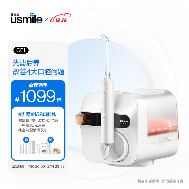 usmile笑容加冲牙器 洗牙器 水牙线 洁牙器 洁牙机 家用台式冲牙器 CF1冲牙器 皓月白价格:1279.00元!