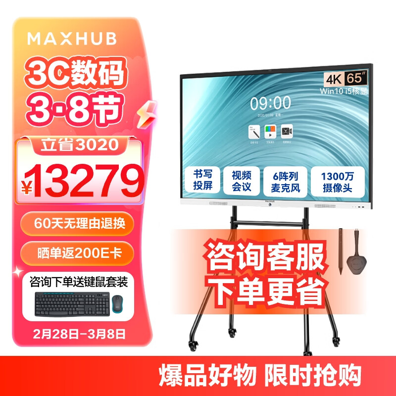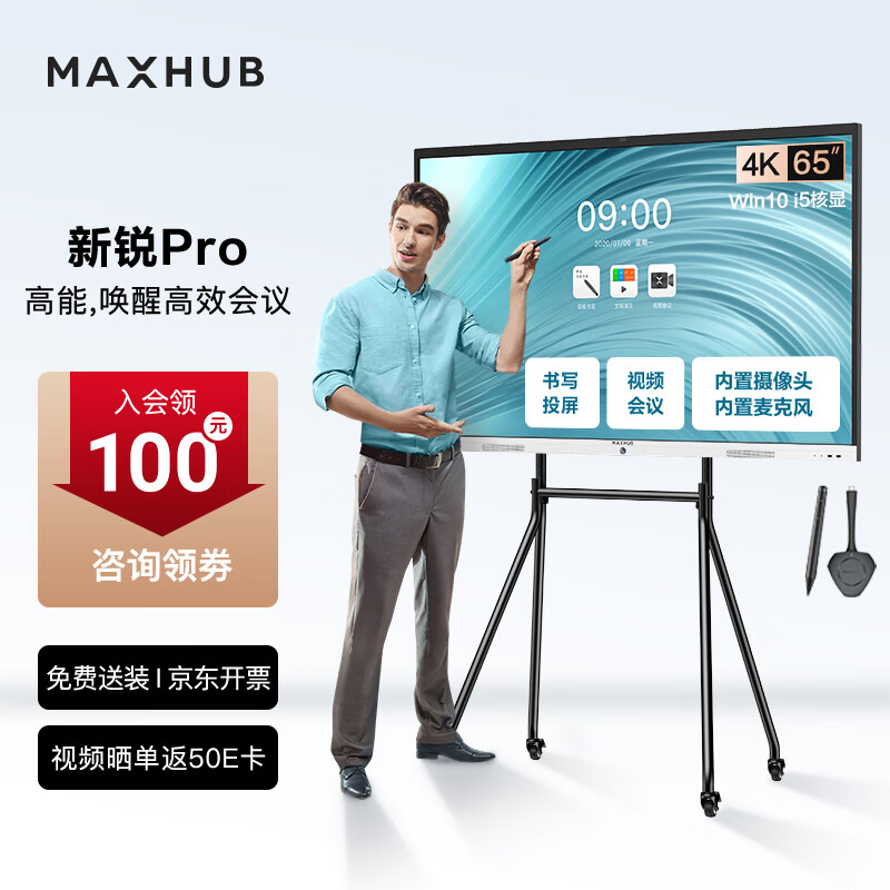 maxhub视频会议平板一体机教学智慧屏摄像头麦克风触摸屏白板新锐Pro65 Win10+简约支架+无线传屏+笔价格:13279.00元!