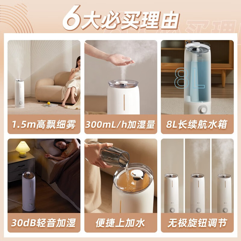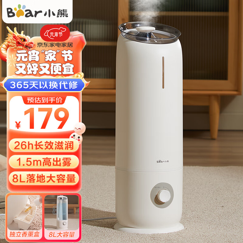 小熊(Bear) 加湿器落地式 卧室家用大雾量大容量上加水办公室空调房低音空气净化增湿器 升级旋钮丨轻音加湿+落地大雾量+便捷上加水+8L价格:199.00元!