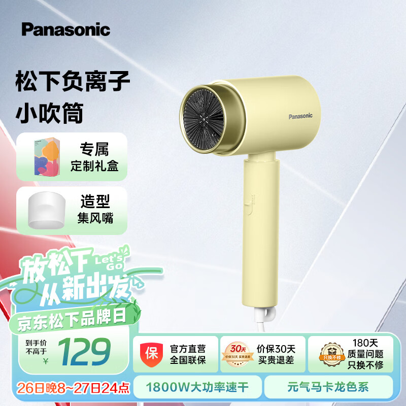 松下(Panasonic)电吹风机大功率高速大风力速干便携送学生宿舍家用负离子护发新年礼物电吹风筒EH-WNE5H礼盒款黄价格:129.00元!
