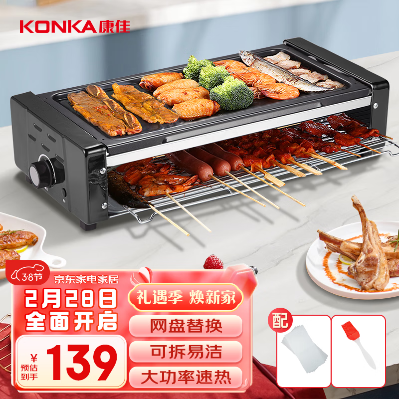 康佳(KONKA)电烧烤炉 双层烤串机不粘电烤盘烤肉机室内无烟烧烤架子韩式烤肉锅电烤炉 KEG-W261A价格:139.00元!