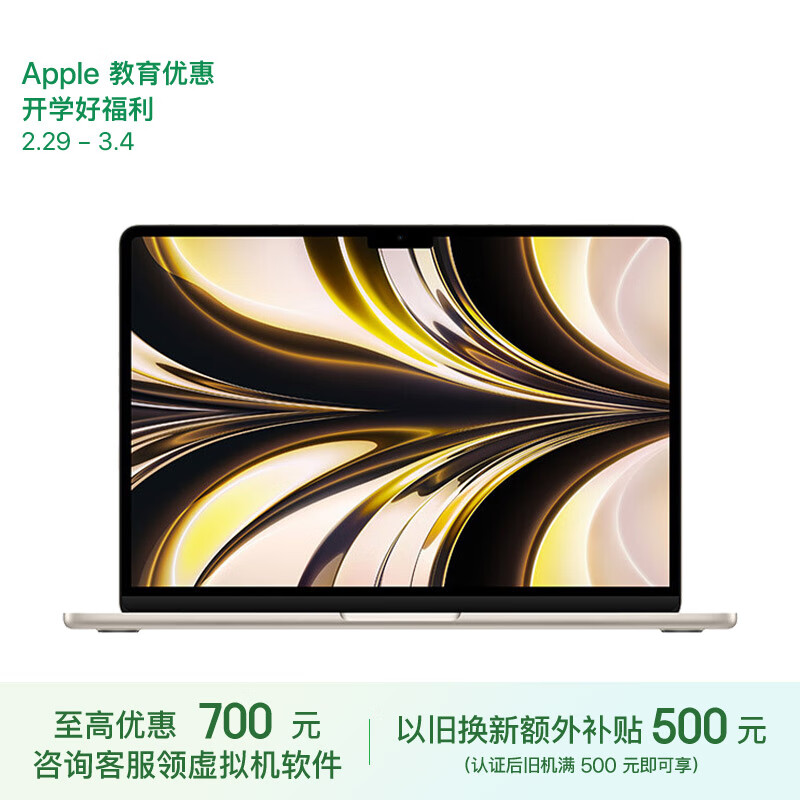Apple/苹果2022款MacBookAir【教育优惠】13.6英寸M2(8+8核)16G512G星光色笔记本电脑Z15Y0003M【定制】价格:11049.00元!