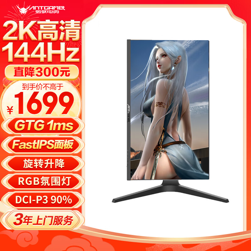 ANTGAMER27英寸快速IPS屏幕高清2K144Hz窄边框1msHDR技术升降台式液晶 电竞游戏电脑显示器ANT27TQ价格:1699.00元!