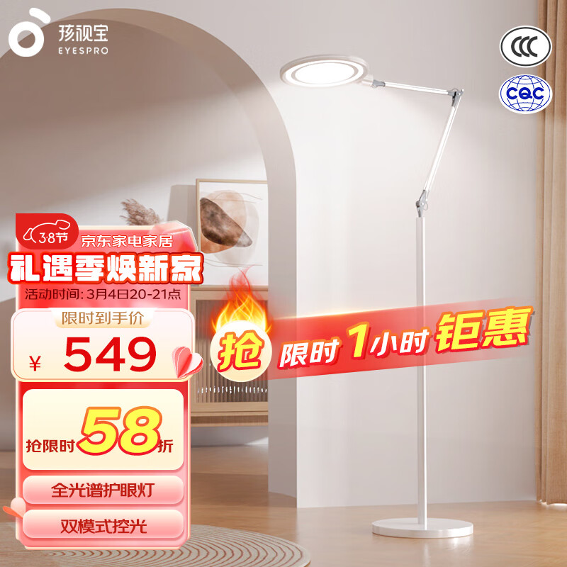 孩视宝全光谱落地灯客厅床头卧室沙发阅读护眼灯学习台灯钢琴灯FH701A-D价格:959.00元!