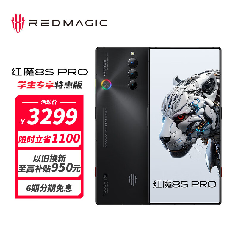 努比亚(nubia)红魔8S Pro屏下游戏手机 8GB+256GB暗夜骑士 第二代骁龙8 6000mAh电池 5G手机【学生专属】价格:4399.00元!