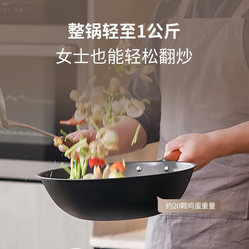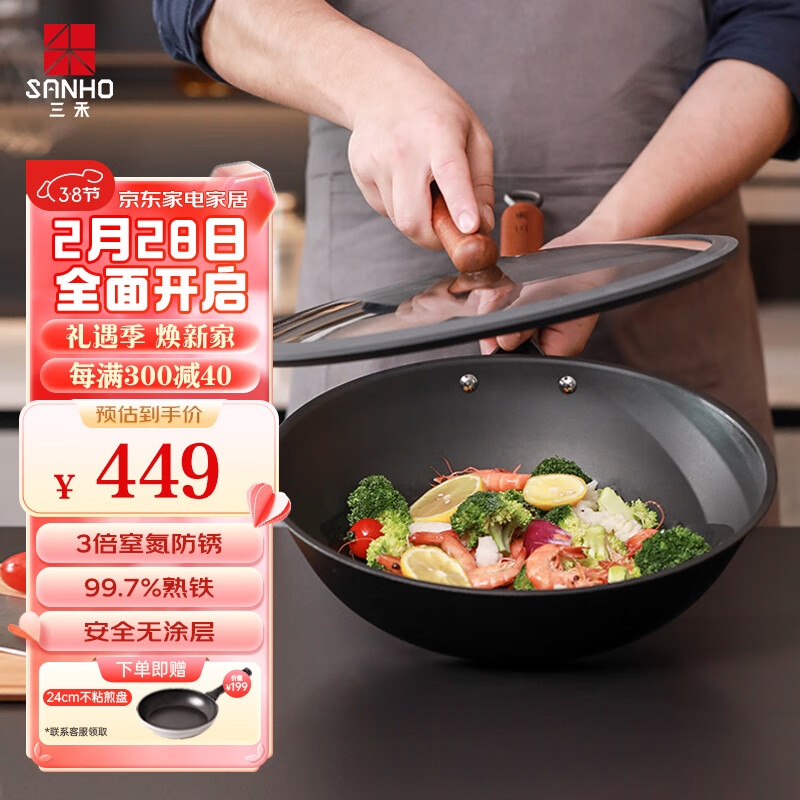 三禾无涂层熟铁锅家用炒菜锅窒氮防锈不粘炒锅少油烟轻铁锅32cm价格:709.00元!