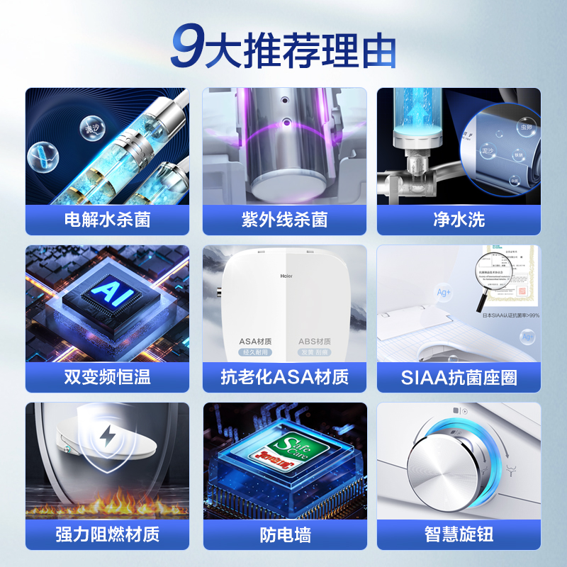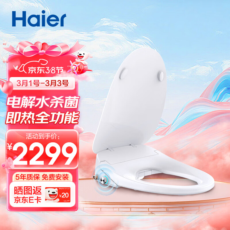 海尔(Haier)智能马桶盖 电解水杀菌款 即热遥控电动加热自动除臭 V7-5320U1价格:2999.00元!