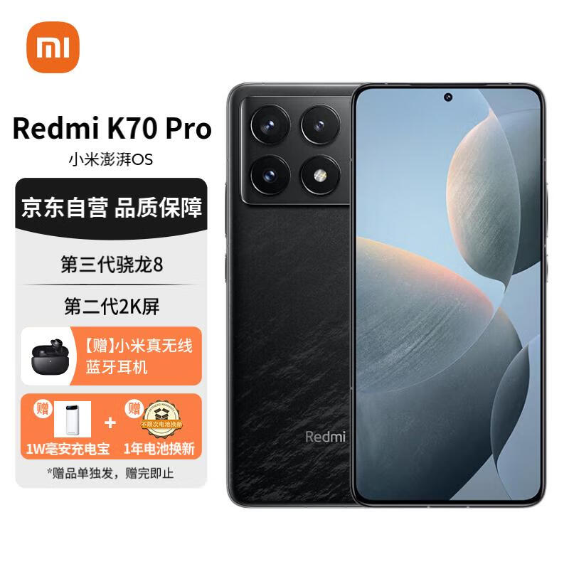 小米(MI)Redmi K70 Pro 第三代骁龙? 8 小米澎湃OS 第二代2K屏 24GB+1T 墨羽 小米红米K70 Pro 价格:4299.00元!