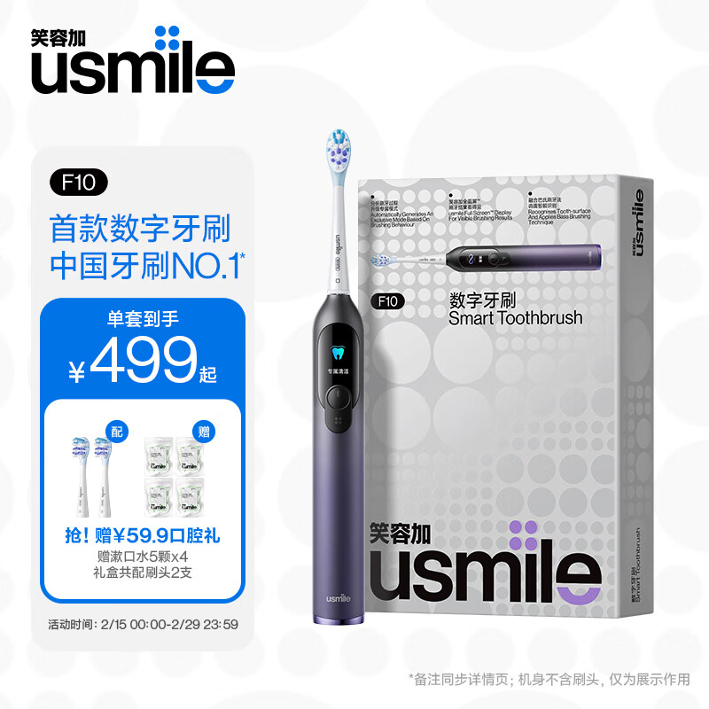 usmile笑容加电动牙刷 屏智能数字牙刷 成人情侣款礼物送男友/女友 F10幻魅紫价格:549.00元!