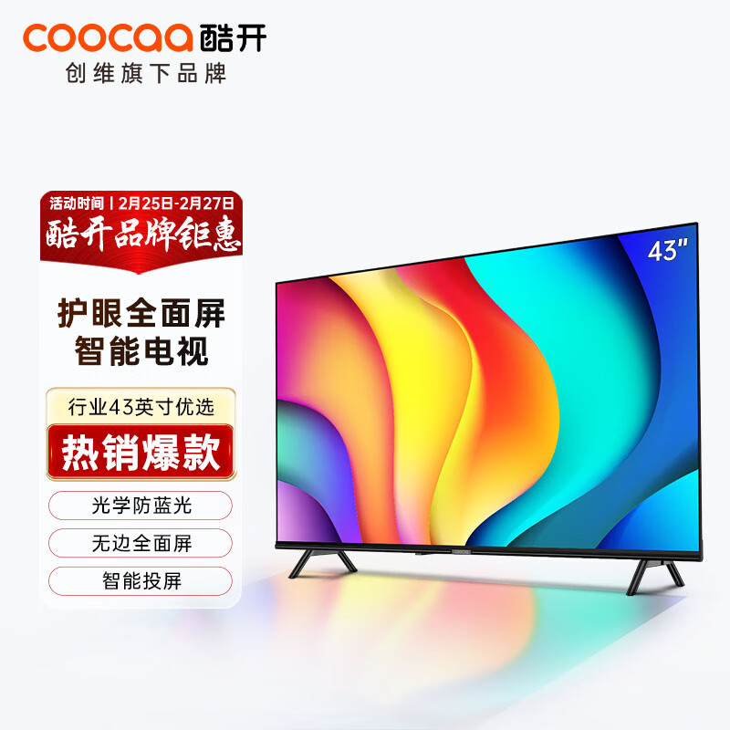 酷开 创维 P31 43英寸电视 全高清 超薄 金属屏 护眼防蓝光 智能平板游戏液晶电视机以旧换新43P31价格:1049.00元!