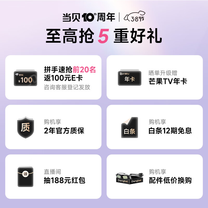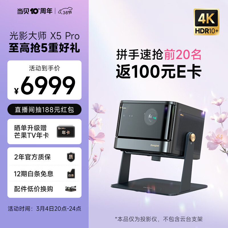 当贝 X5Pro 激光4K投影仪家用 X5P游戏投影 (ALPD影院激光无散斑 2450CVIA流明 MT9679芯片4G+128G)价格:6999.00元!
