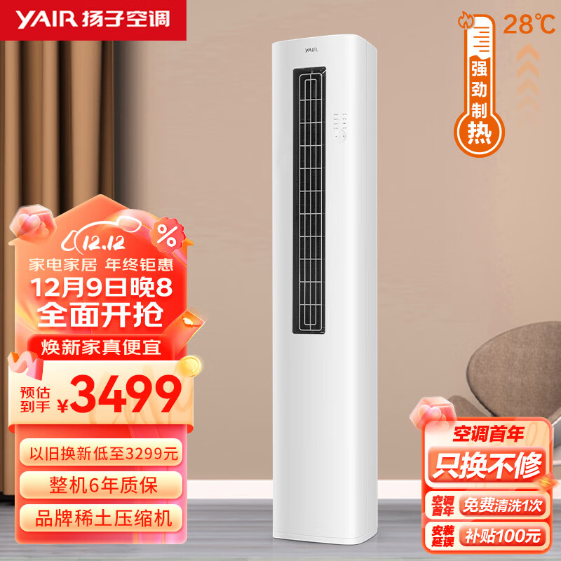 扬子空调 3匹 新三级能效 变频 冷暖 以旧换新 制热取暖 空调立式 客厅空调柜机 KFR-72LW/Q151fB3价格:3499.00元!