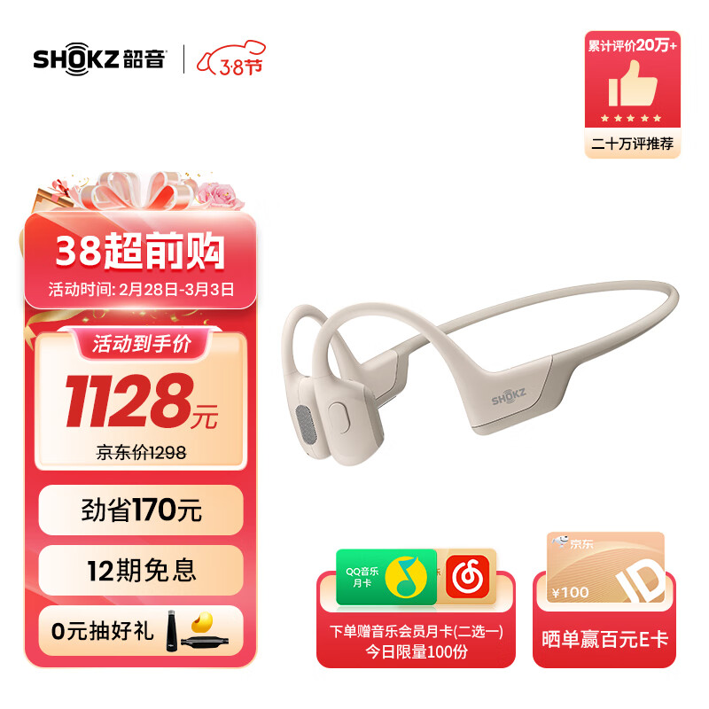 韶音(SHOKZ)OpenRun Pro骨传导蓝牙耳机开放式耳机运动无线耳骨传导耳机跑步骑行不入耳佩戴S810/S811 沙漠黄价格:1128.00元!