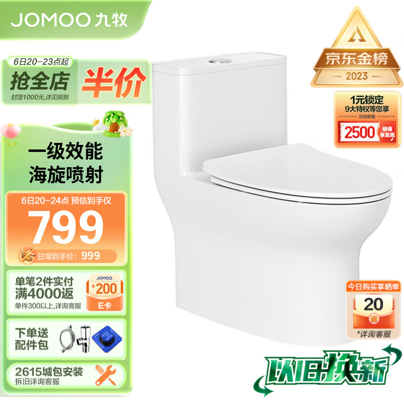 九牧(JOMOO)11173-2-1/31KA-3家用大冲力海旋喷射虹吸排污马桶坐便器305坑距价格:1049.00元!