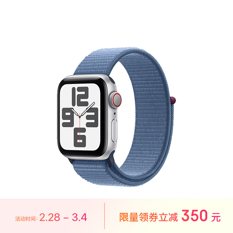 Apple/苹果 Watch SE 2023款智能手表GPS+蜂窝款40毫米银色铝金属表壳凛蓝色回环式运动型表带MRGR3CH/A价格:2349.00元!
